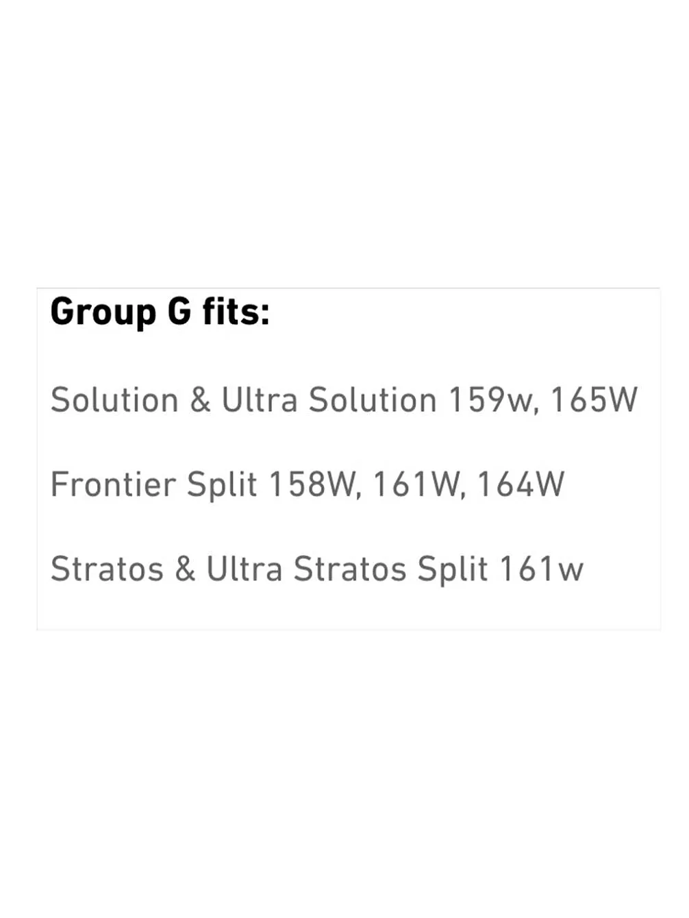 Gruppe G: Vorgeschnitten und kompatibel mit Carbon Solution 165w & Solution 159w,165w & Frontier Split 158w,161w,164w (ab 2016).